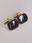 Vintage Tortoise Shell Mens Cufflinks 1/20 12k G.f. Brown Rectangle 13/16"