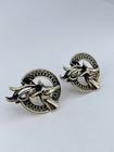 Vintage Swank Reindeer Mens Cufflinks Round Gold Tone Bucks Whale Back 1-1/8"
