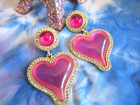 Gripoix Style Lucite Heart Earrings Pierced Gold Tone Pink Rhinestone Stunning!