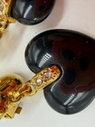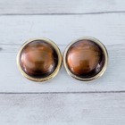 Vintage Clip On Earrings Large Shiny Brown With Gold Tone Halo 1 & 1/8"