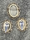 Vintage Mother Of Pearl Brooch Earrings Set Screw Back