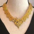 Vintage 80s Laurel Burch Swan Wing Gold-tone Choker Collar Necklace/earrings 16"