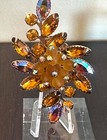 Beau Jewels Unsigned Brooch & Earring Set Vtg Crystal Pin Stem Aurora Borealis
