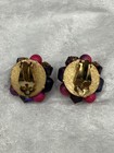 Vintage Sequin Beaded Earring And Brooch Set Red Screw Back