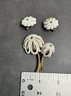 Monet White Gold Enamel Flower Motif Brooch & Clip On Earrings Set Vintage