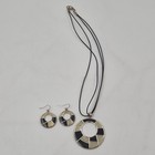 Vtg Y2k Mosaic Style Black Glitter Sparkly Silver Necklace Earrings Jewelry Set