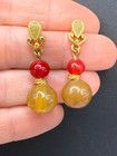 Vintage Glass Beaded Necklace Earrings Set Red Orange Yellow 34”