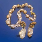 Bounkit Aquamarine -garnet-pearl Clip W Baroque Pearl Necklace Earrings Gift🎄🎉