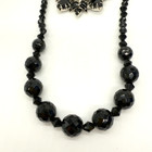 Vintage Rhinestone Brooch Necklace Black Glass Clear