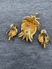 Vintage Lisner Brooch Earrings Set Thistle Gold Tone