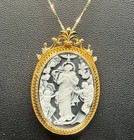 Black Cream Gothic Vintage Dark Rose Cameo Locket Pendant Necklace Woman Gold