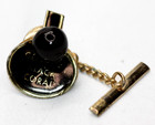Vintage Goldtone Black Stone & White Inset Stone Tie Bar Clasp / Tie Clip!