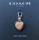 Nwt $55 Coach Reversible Lapis Gold Collectible Heart Charm + Dust Bag