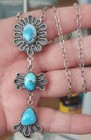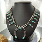 Sterling Silver Southwestern Style Turquoise Squash Blossom Necklace For Women