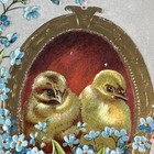 Antique Easter Postcard 2 Chicks In Gold Oval Frame - No. 761 Printed In Saxony