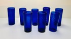 8 Vintage Mexican Hand Blown Swirl Cobalt Blue Art Glass Tumblers 6"