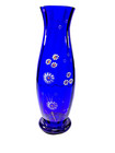 Vintage, Cobalt Hand Painted Floral Design Art Glass 11.25" Vase