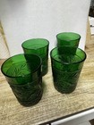 Vintage Anchor Hocking Forest Green Sandwich Glasses (4) 8 Oz. 4" Mid Century