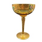Vtg Venetian Libation Gold Glass Goblet Hand-painted Floral Design & Twisted Ste