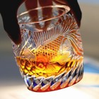 Japanese Style Edo Kiriko Glass Hand Cut Crystal Whisky Glasses Dark Blue 8.3oz