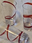 Pier 1 Red Swirl Line Highball Glass Tumbler Cobalt Red Swirl 6.5” 16oz Set Of 3