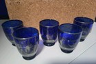 5 Vintage Cobalt Blue Glasses With Silver Landscape Italian Gondola Design