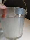 Vtg Clear Pressed Glass Ice Bucket Barrel Design Hammered Metal Handle