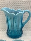 Jefferson Glass Blue Opalescent Iris With Meander Pitcher & 6 Glasses Tumblers