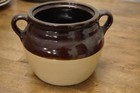 Monmouth Stoneware Crock W/ Handles – Brown & Beige Two-tone Pot – Vintage Usa