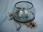Vtg Italian Metal Tole Floral Centerpiece W/green Seeded Bowl Mcm Cottage Shabby