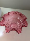 Vtg. Victorian Glass? Ruffled Bowl, Brass Stand Centerpiece.