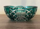 Vtg Cut To Clear Bohemian Crystal Teal Green Lg Centerpiece Bowl Sawtooth Edge