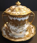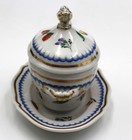 Richard Ginori Italian Fruits Porcelain Mustard Pot W/ Lid And Spoon Gilt Trim
