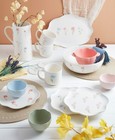 Haven 14" Scallop Floral Stoneware Serving Platter - White With Floral Debossed