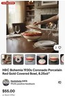 Custom Bundle H&c Bohemia 1930s Coronado Red Gold Oval Platter & Covered Bowl