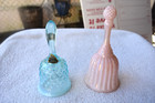 Vtg Fenton Pink Opalescent Glass Bell & Fenton Lt Blue Hobnail Opalescent Bell
