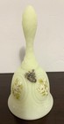 Vtg Fenton Green Custard Glass Hand Painted Floral Bell Signed Sticker