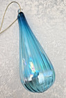 Rare Vintage Hand Blown Dark Aqua Art Glass Float Ball Orb 4” Tall 10" Dia Oblon