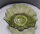 Vintage Green Glass Bowl Flower Petal Design Textured Scalloped Edges Decor Gift