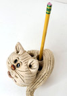 Pence Pets Cat Pen Pencil Hold Figure White Art Clay Pottery Signed