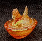 Chicken Hen Pink Orange Glass Salt Cellar Trinket Covered On Basket Nest 2 1/4