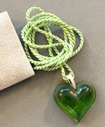 Authentic Lalique France Apple Green Coeur Heart Crystal Pendant Necklace Nib