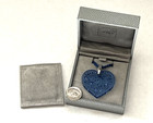 Authentic Lalique France Blue Heart Moon & Stars Crystal Pendant Necklace Nib