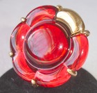 Baccarat B Flower Large Red Mirror Ring Crystal Vermeil Gold 6.5 (53) New No Box