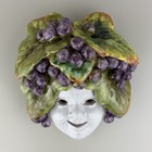 Handmade Italy Ceramic Bacchus Face Wall Mask Majolica Grape Leaves Theatrical