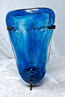 Vtg Artglass Blue Face Mask Swirls Of White & Brown Jaramillo Style Mexico Stand
