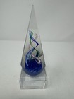 Vtg Art Glass Paperweight Aqua Blue Yellow Red Swirl Desk Decor Gift 4" Tall