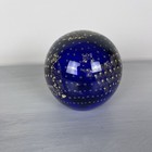 Cobalt Blue & Gold Glass 4” Paperweight Controlled Bubbles Bullicante Metallic