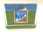 Vintage Art Glass Crab Starfish Paperweight Blue Base Red Crab 6" Diameter