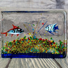 Vintage Murano Style Fish Aquarium Paperweight Glass Tropical Scene Bubble Large